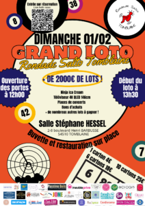 Chers Adhérents, Le grand Loto de notre association Rondade Salto fait son retour. Il aura lieu le Dimanche 01 Février 2026 à la